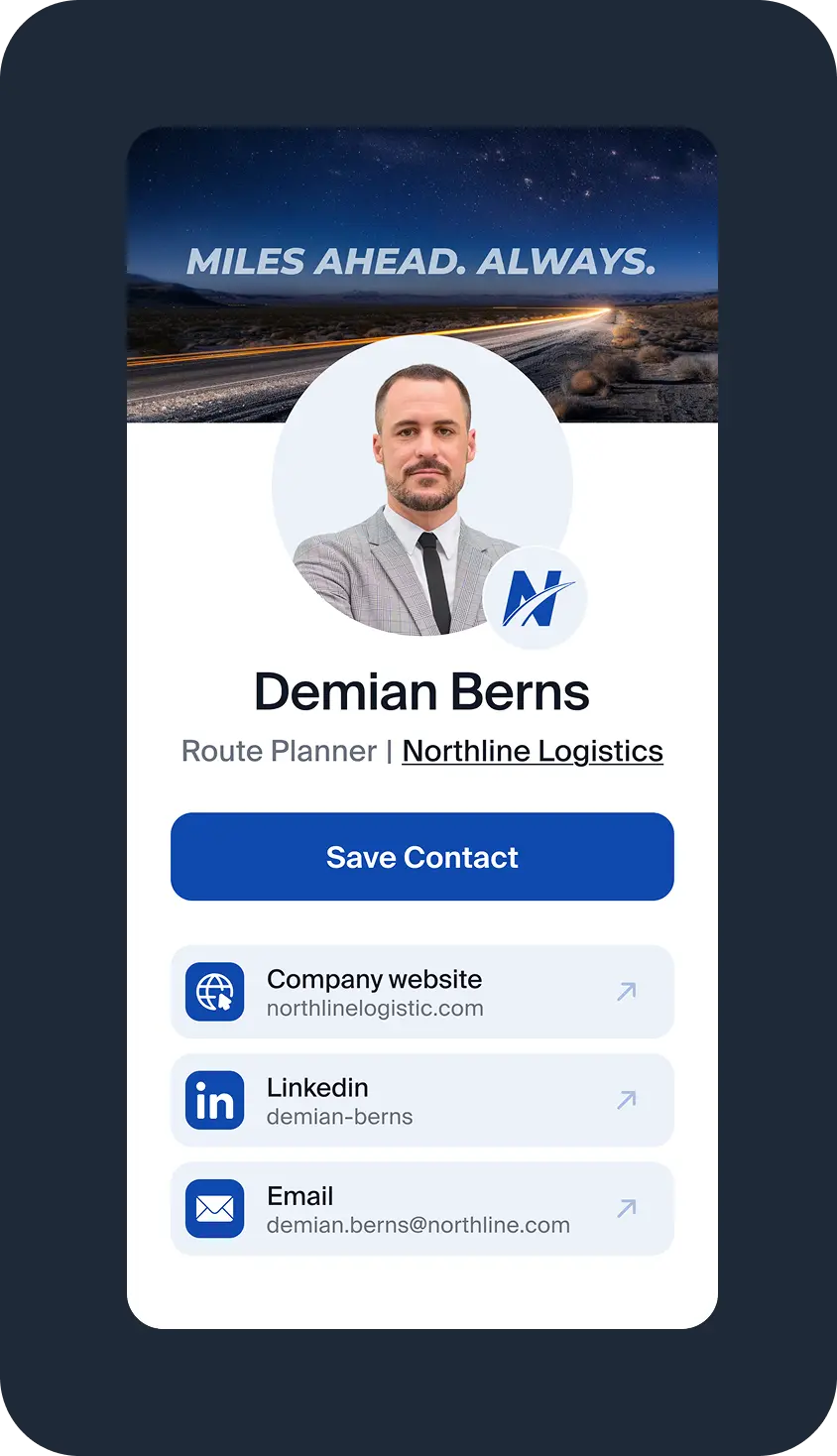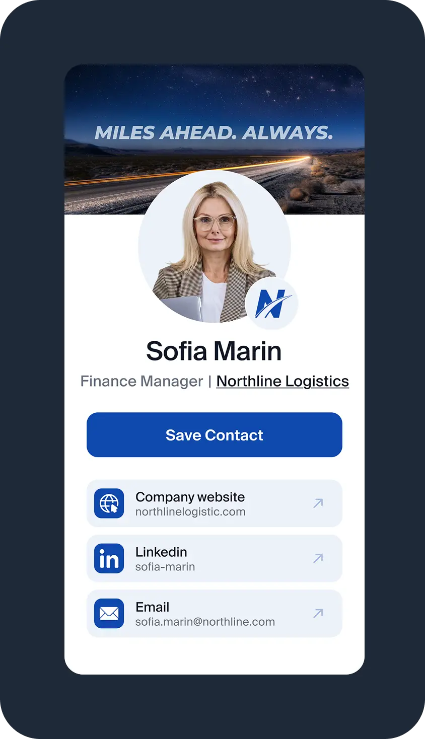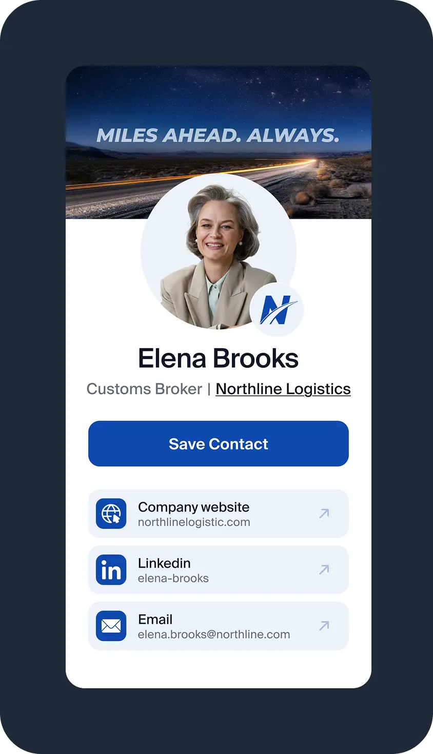 Your team can share cards via QR codes, links, Google Wallet and Apple Wallet so they are always ready wherever they go.