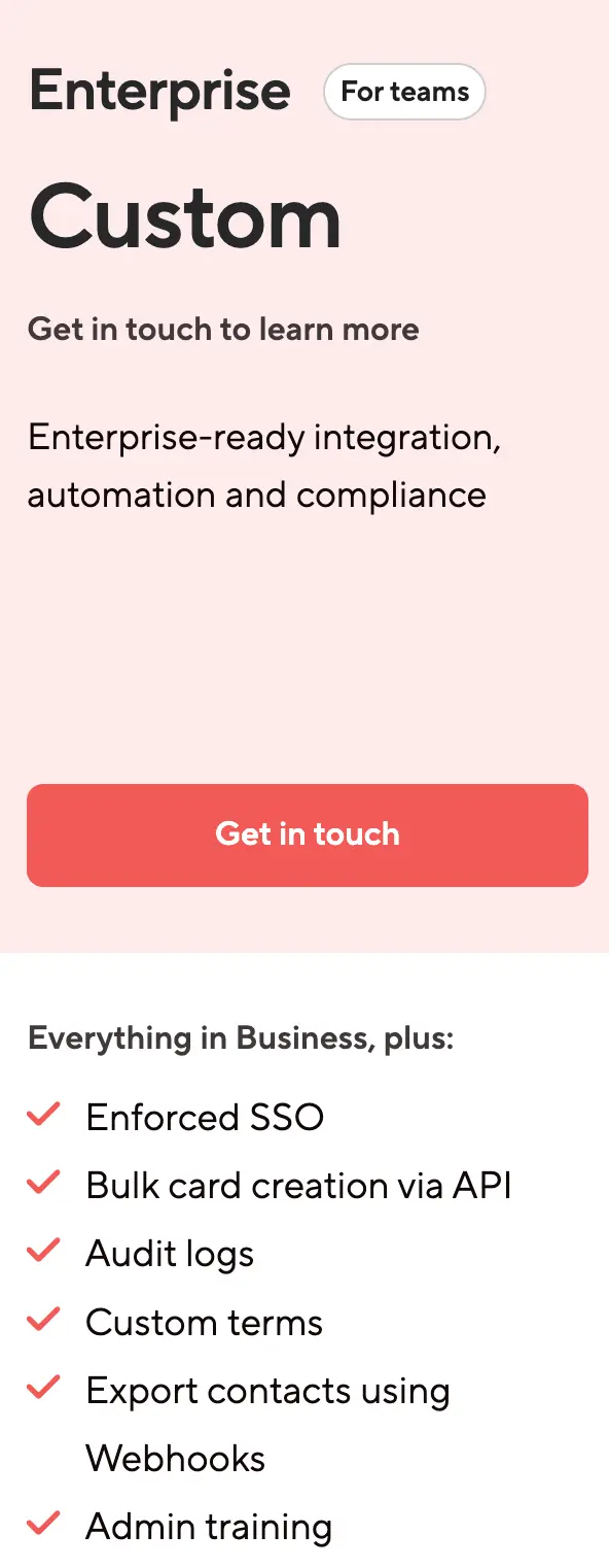 The Business plan is designed for teams that need straightforward digital business card management without complex IT requirements.