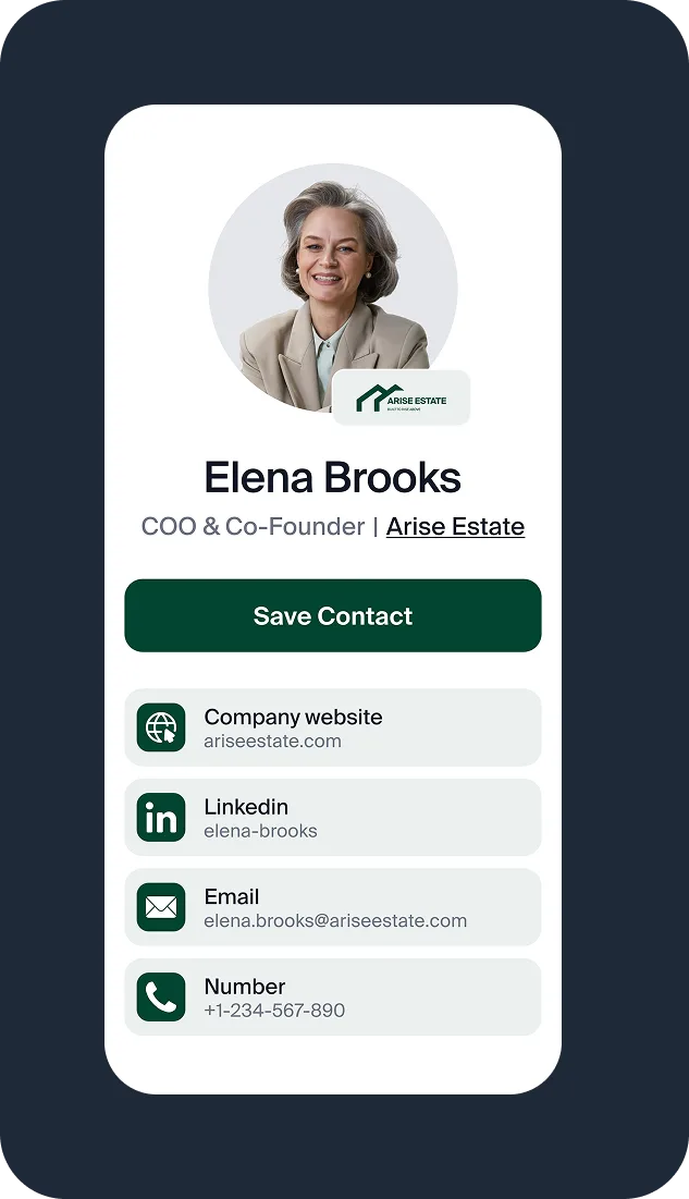 “DBC gave us full control over how our team presents the brand. Updates to job titles, photos, or links sync instantly across every card — no more outdated contact details floating around.” - Anna Bing, CEO at CoreVision