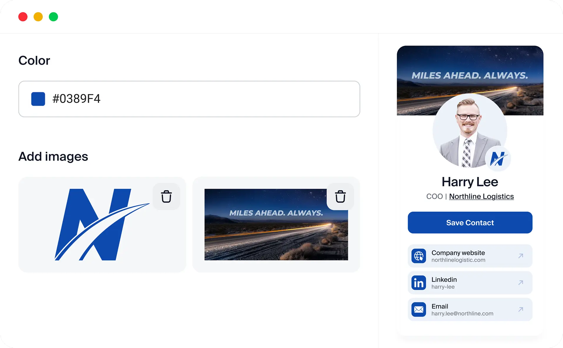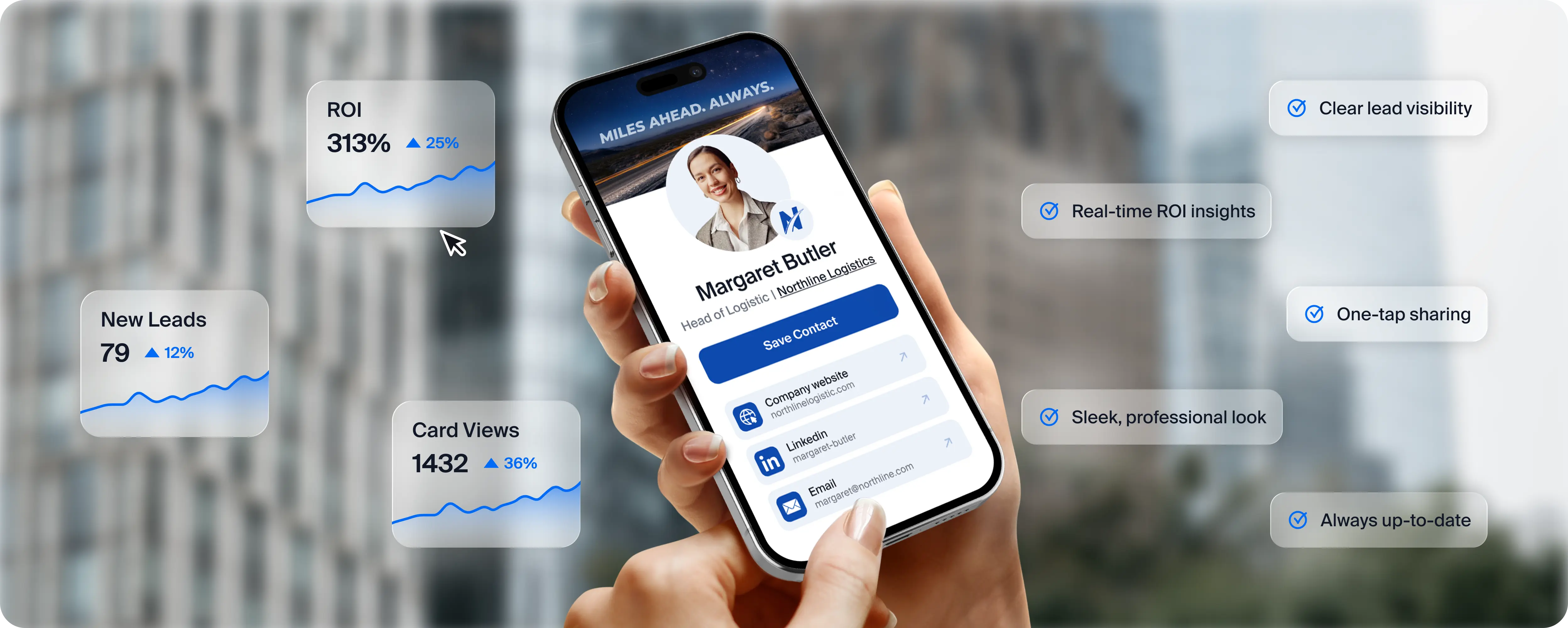Your team can share cards via QR codes, links, Google Wallet and Apple Wallet so they are always ready wherever they go.